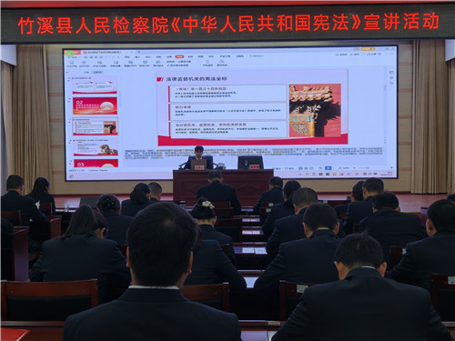 12月3日上午,竹溪县检察院青年干警王星宇以“在宪法轨道上深化府检联动 共筑法治中国坚实根基”为题,为全体干警讲授了一堂生动而深刻的宪法宣讲课。